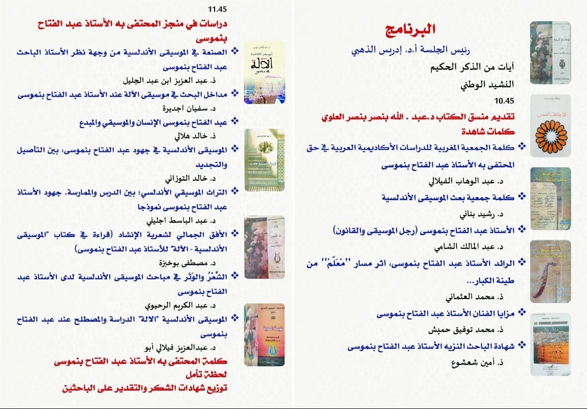 ندوة تكريمية حول المنجز العلمي والفني للأستاذ عبد الفتاح بنموسى، يتخللها تقديم الكتاب التكريمي: «الطرب الناعم».