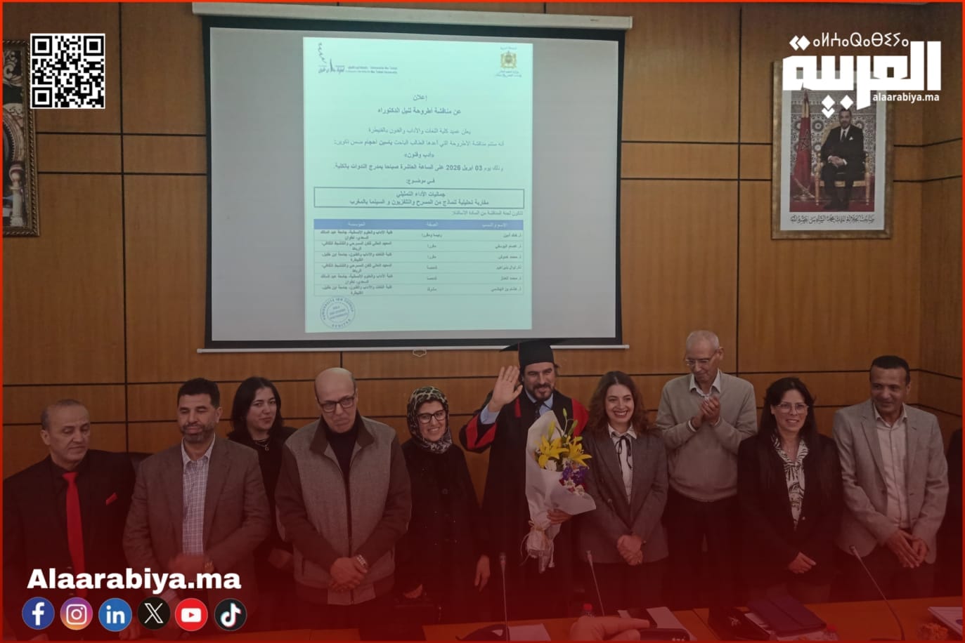 وبعد اختتام المناقشة والمداولة، قررت اللجنة العلمية منح الطالب الباحث ياسين أحجام درجة الدكتوراه بـ ميزة “مشرف جداً”، تتويجاً لمساره البحثي وتقديراً للجهد العلمي والأكاديمي المبذول في إنجاز هذا العمل المتميز.